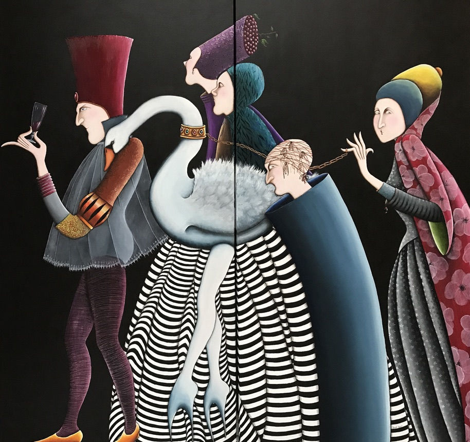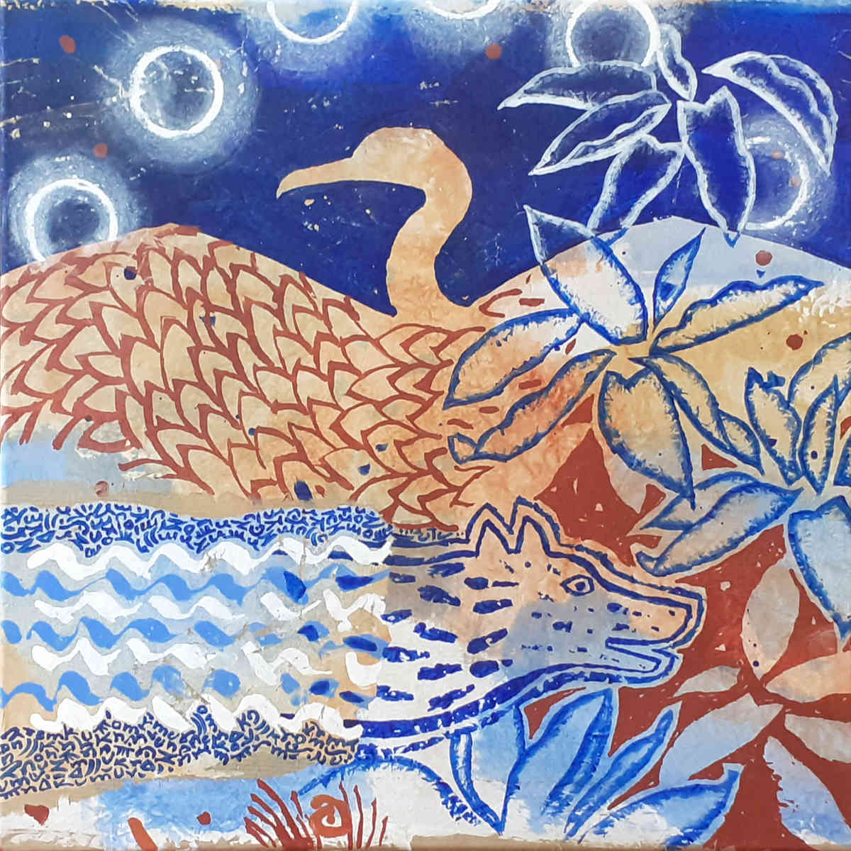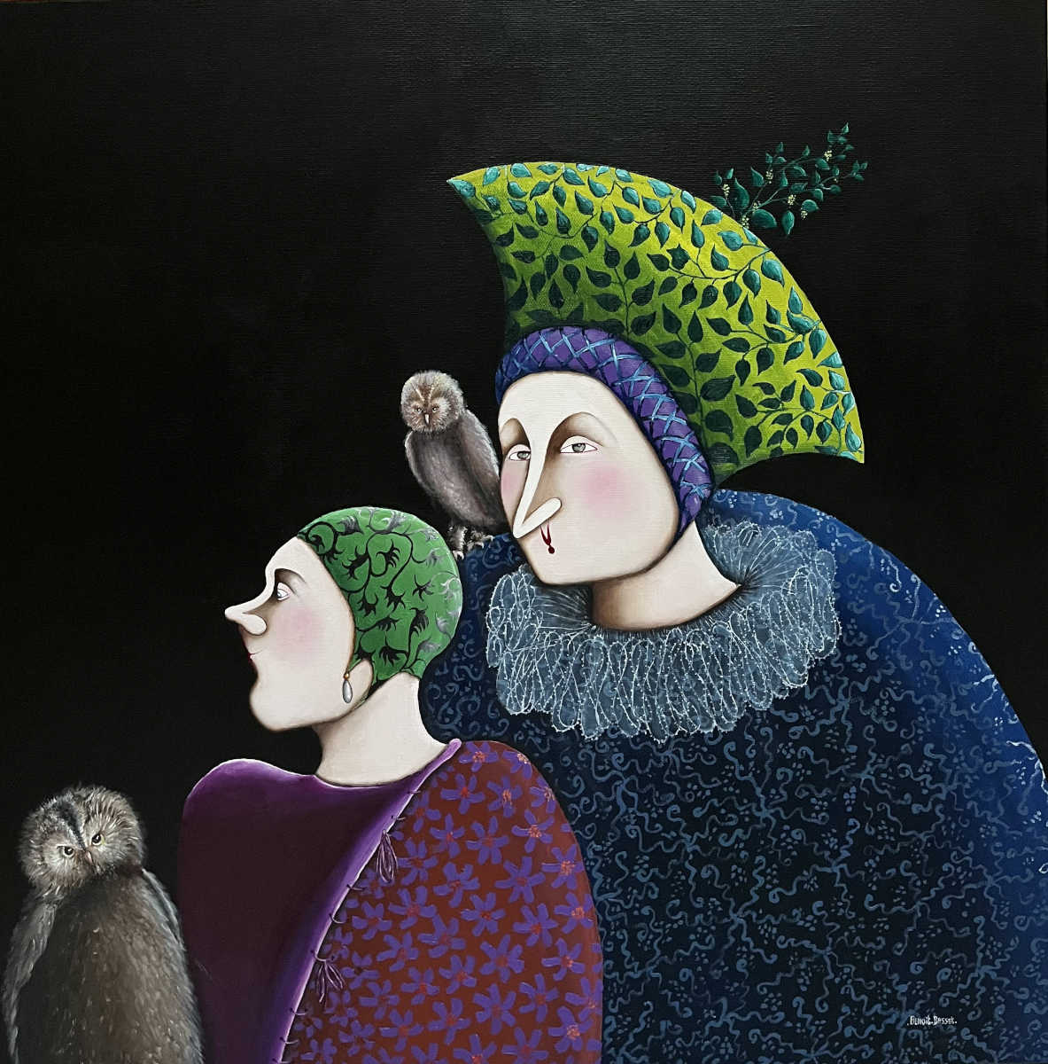 J’aime relier ce que l’humain a de plus intime à une représentation parfois décalée si la nécessité s’en fait sentir, imprégnée en cela de mythes dont je ne suis pas toujours consciente. Partie d’une figuration relativement symbolique, prenant ses racines dans un imaginaire nourri de l’art de civilisations éloignées de la mienne, je me suis acheminée vers une représentation d’êtres charnels qu’on croirait connaître, si ce n’est que bien souvent la chimère les rejoint et donne un sentiment d’étrangeté.