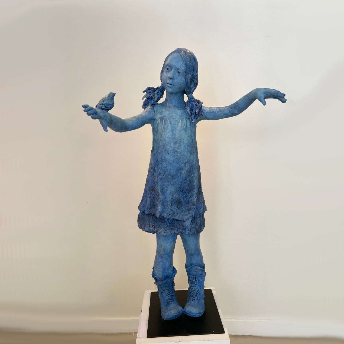 Le bronze, fondu à la fonderie BARTHELEMY ART de Crest, est rehaussé de patines de couleur pour un aspect plus vivant.